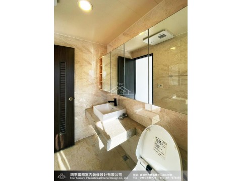 主要材料 | 浮雕實木木心板、E1V313環保系統板、F1防水防蟲角材、耐燃一級矽酸鈣板、鏡子、玻璃、進口壁紙、富美家美耐板、無毒水泥漆